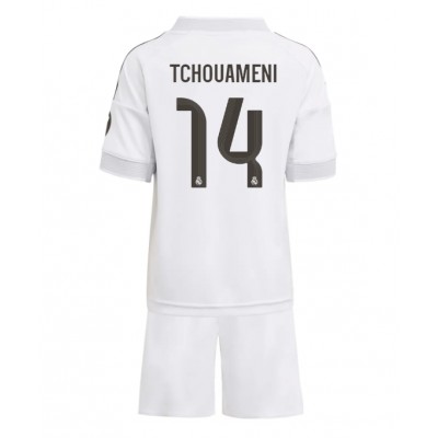 Maglia Calcio Real Madrid Aurelien Tchouameni #14 Prima Divisa Bambino 2025-26 Manica Corta (+ pantaloncini)