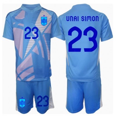 Maglia Calcio Spagna Unai Simon #23 Portiere Prima Divisa Bambino Europei 2024 Manica Corta (+ pantaloncini)